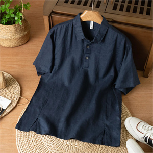 男士純亞麻短袖襯衫